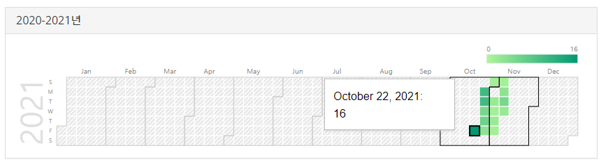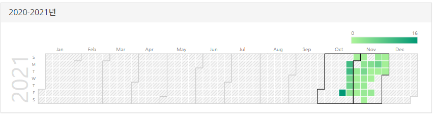 11월 말에는 백준문제 풀기보다는 빅데이터 공부에 집중을 해서 그런지 조금 빈곳이 있긴하다ㅋ