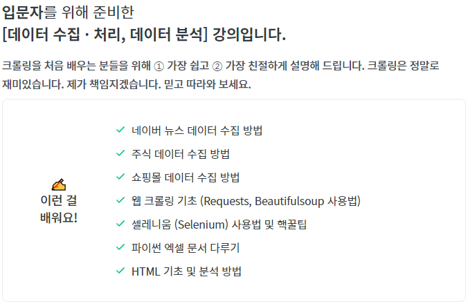 | [inflearn] 이것이 진짜 크롤링이다 (기본편) - 2 (0) | 2021.12.05 |