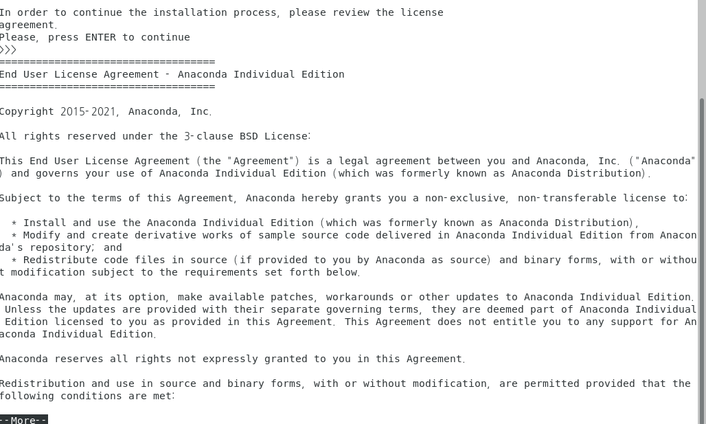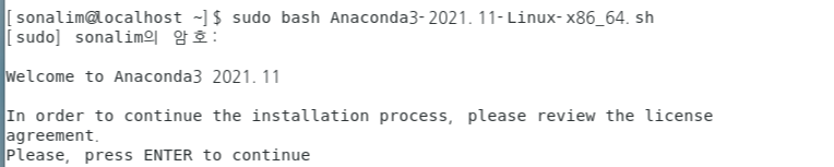 sudo bash Anaconda3-2021.11-Linux-x86_64.sh