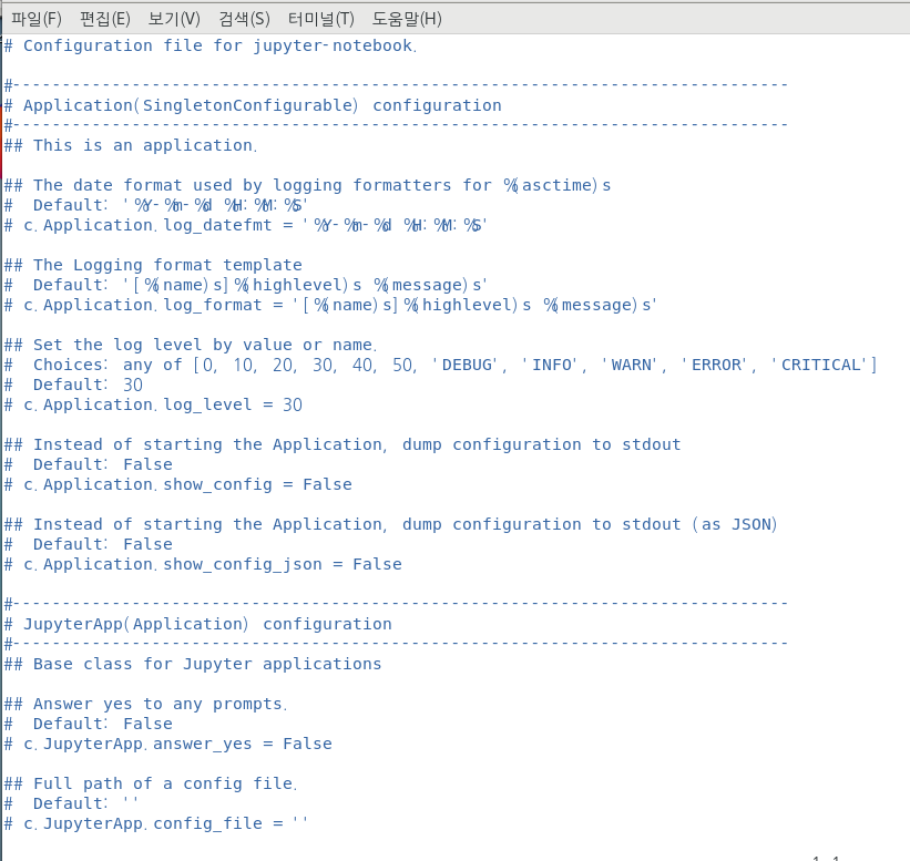 2) 외부에서 접속하기 위한 설정(c.NotebookApp.ip)