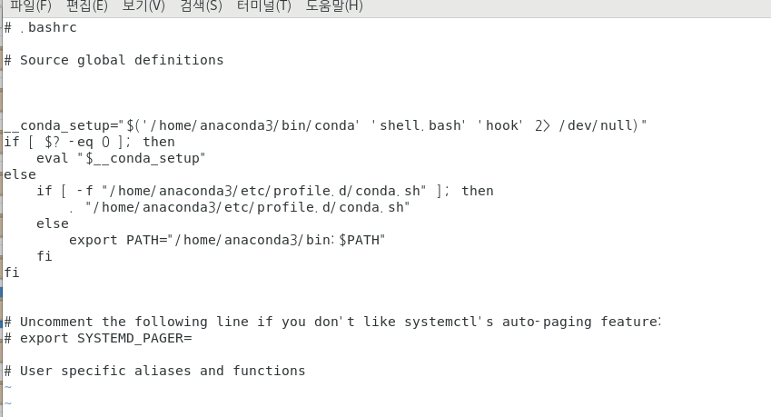 확인해보고 싶으면 설치경로로 설정한 home/anaconda3/bin에 들어가보면 확인할수 있다.