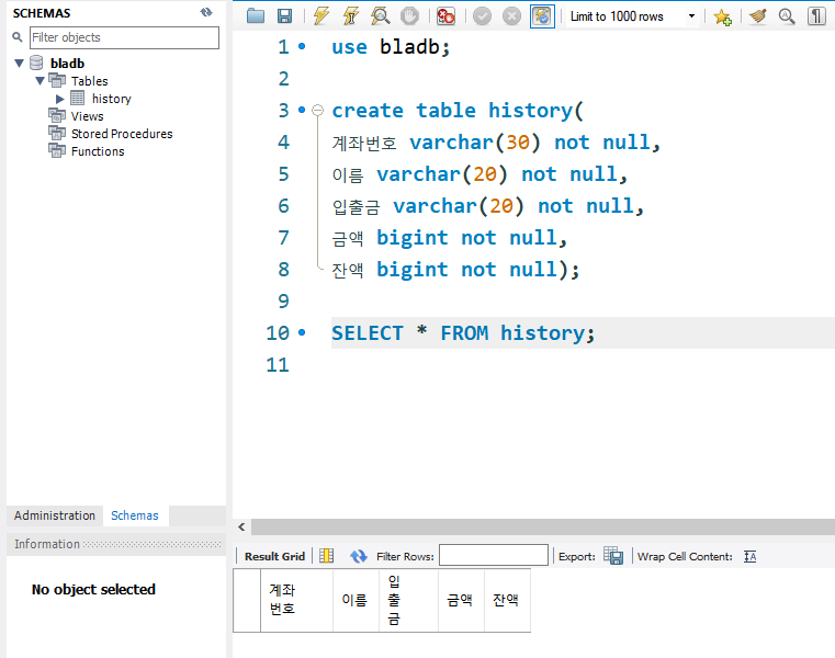 use bladb; # db 사용하기