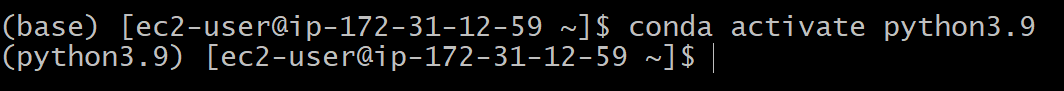 🎈14. conda activate 명령어로 설치한 python 3.9이름의 가상환경으로 접속한다.