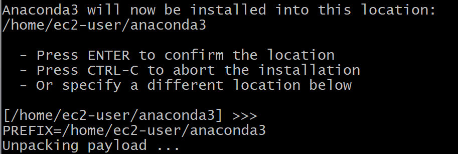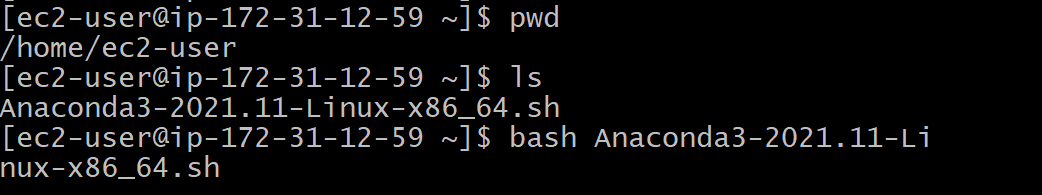 (home/ec2-user/anaconda3에 설치완료 됐음을 확인!)