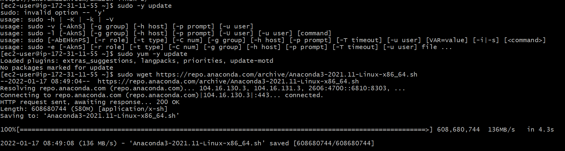 sudo wget 아나콘다 리눅스버젼 설치 링크주소 : 아나콘다 다운받기