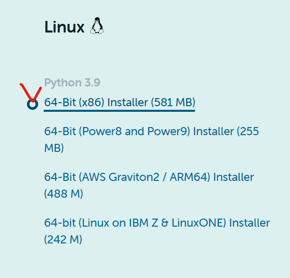아래 ANACONDA 다운로드 페이지에서 리눅스 설치 링크위에 오른쪽 클릭을 한 다음, 링크주소를 복사 한다!