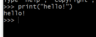 ; 테스트로 >>> 파이썬 입력줄에 print("hello!")입력하면 hello!가 정상적으로 출력된다.