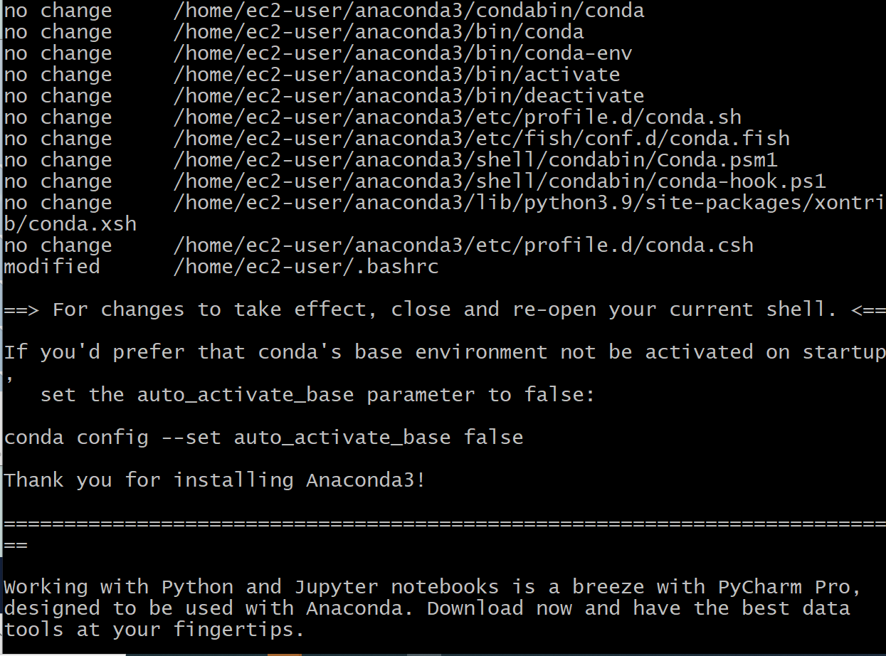 (home/ec2-user/anaconda3에 설치완료 됐음을 확인!)
