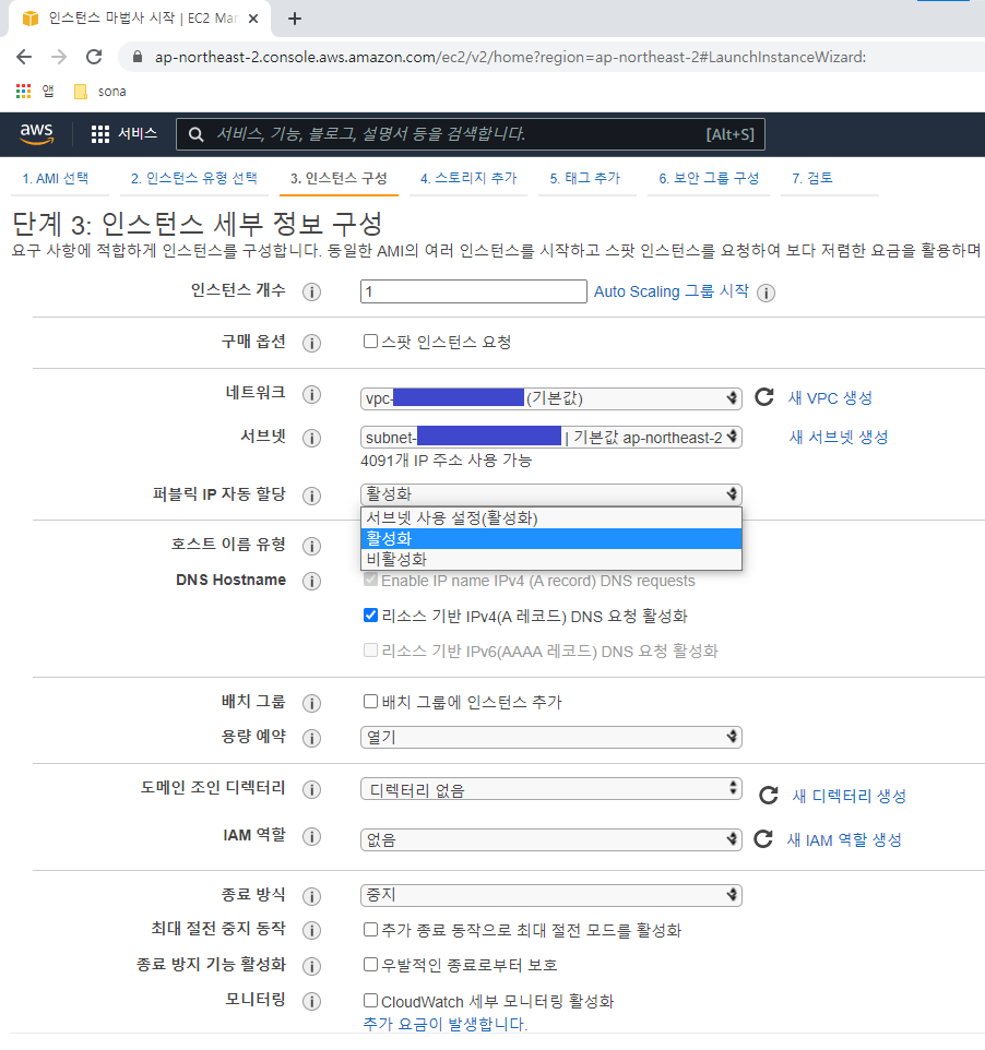7. [단계3] 인스턴스 세부정보 구성 선택하기 >>> [다음]버튼 누르기