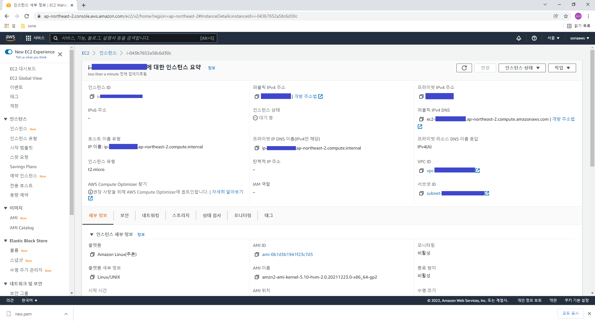 12. 인스턴스 요약 창 확인하기 & 다운받은 키 페어 파일 확인하기