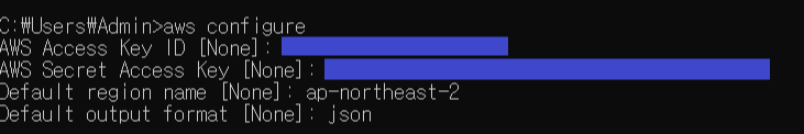 (*꿀팁 1 : 혹시나 오타가 발생해버린 경우 걱정하지말자! 다시 aws configure 명령어를 다시치면 덮어쓰기처럼 되니까요!)