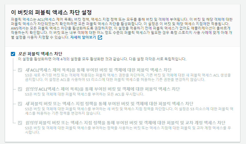 🧺4. S3 버킷 액세스 차단 설정