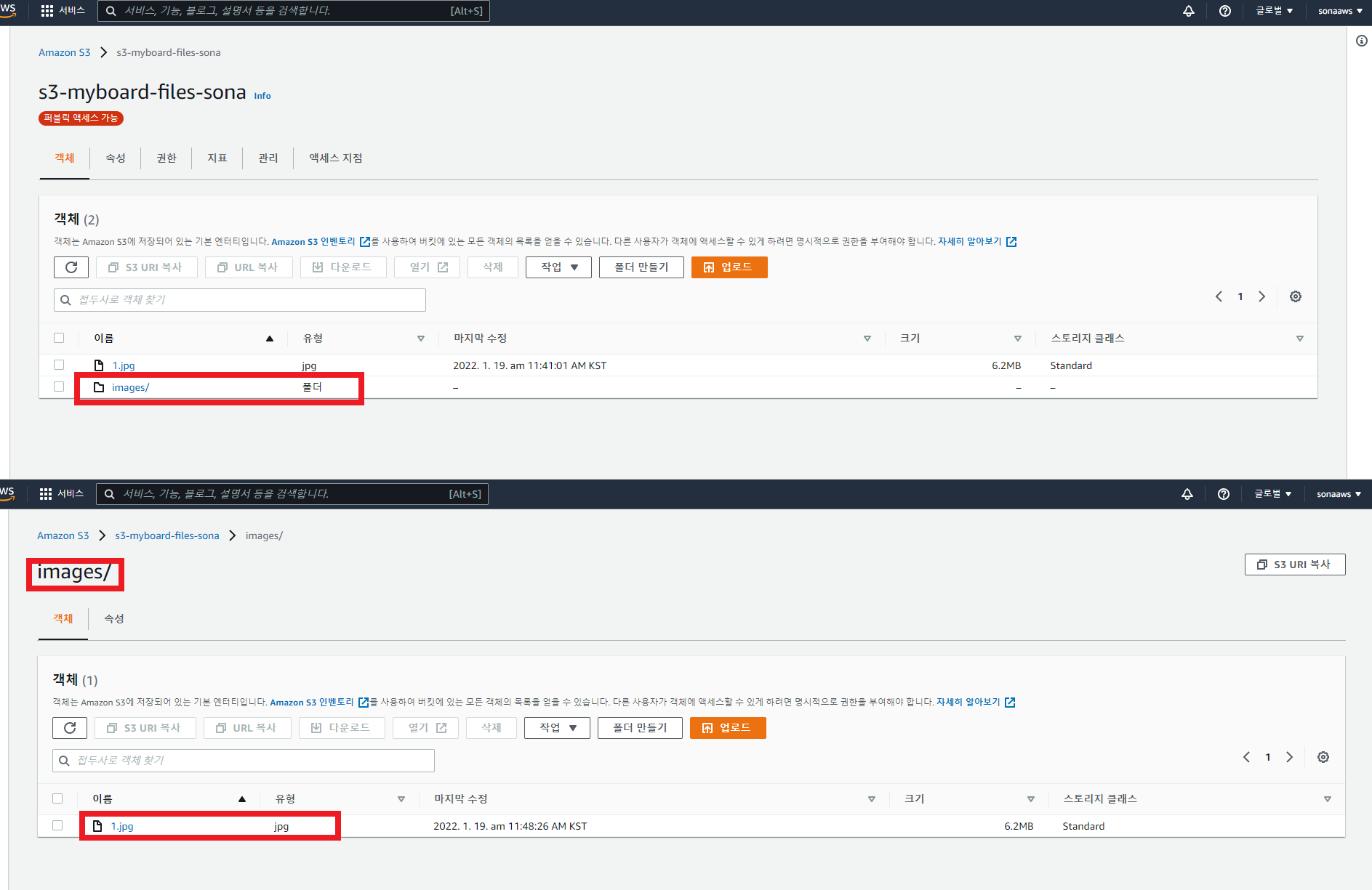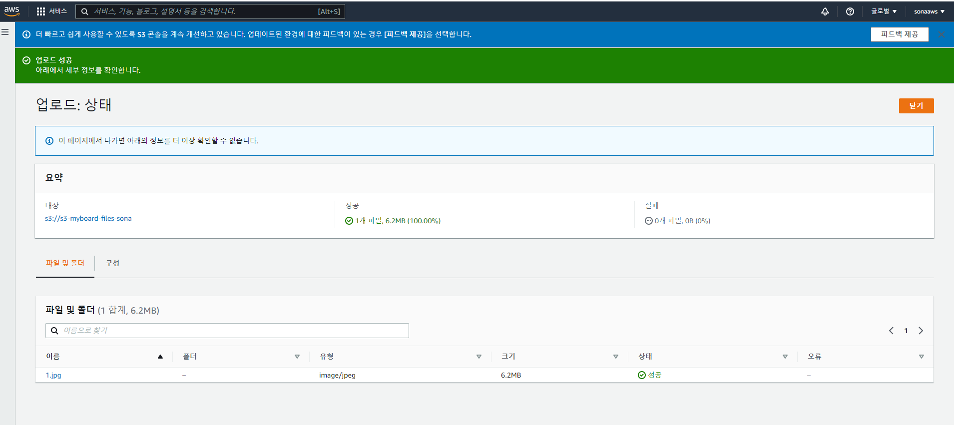 * 앞으로 연결해놓은 AWS S3로 이미지 파일을 올릴 수 있게 되었다! 🙃