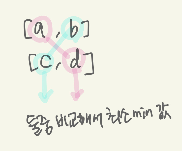 한 바구니에 [a,b] 다른 바구니에 [c,d] 이렇게 값이 있다면,