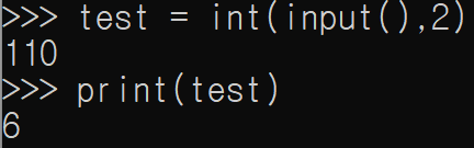 | [ex] 110을 input을 했는데 10진수인 일백십으로 인식한게 아니라, 2진수인 110(2) 육으로 인식 했다. ![]() |