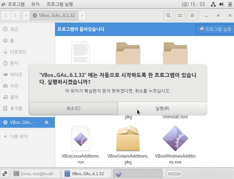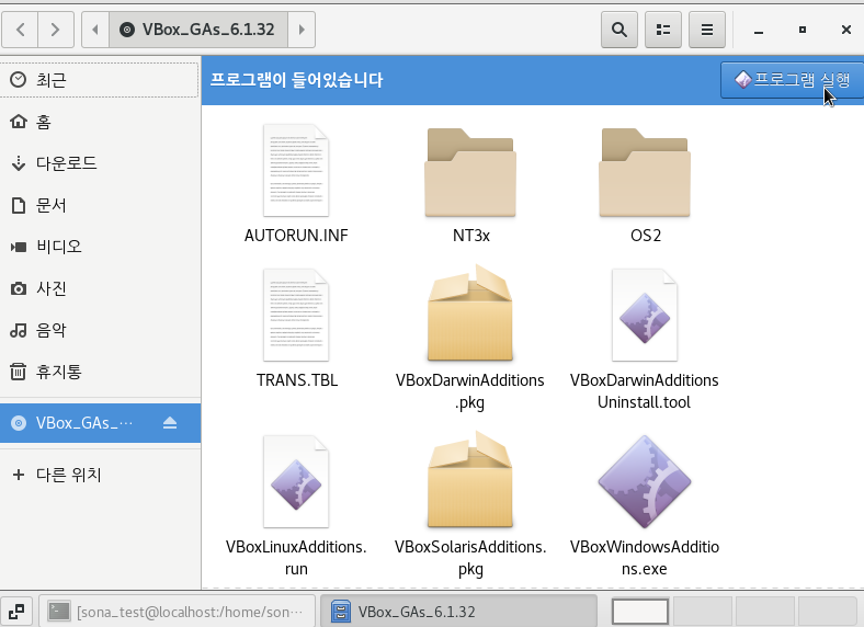 4. 바탕화면에 게스트확장CD 아이콘 더블클릭해서 실행