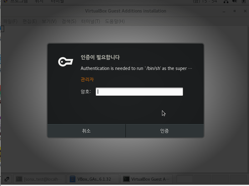 * root 계정이 아니다 보니 암호를 입력하라는 팝업창이 뜬다.