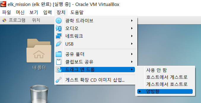 2. [장치] -> [드래그 앤 드롭] -> [양방향] 선택