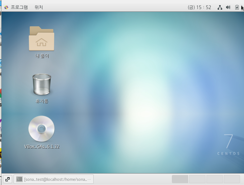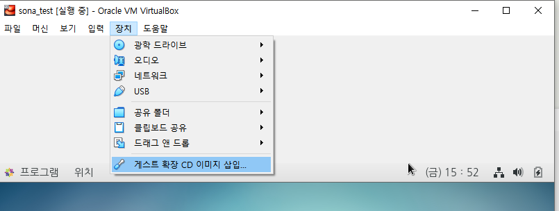 --> 만약 바탕화면에 안보이면 상위 메뉴줄에서 [장치] -> [게스트 확장 CD 이미지 삽입]을 눌러주면 바탕화면에 CD아이콘이 생긴다.