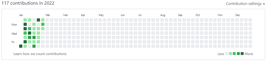 2022년도 github 잔디심기 상황은 군데군데 구멍이 나있다. 😭