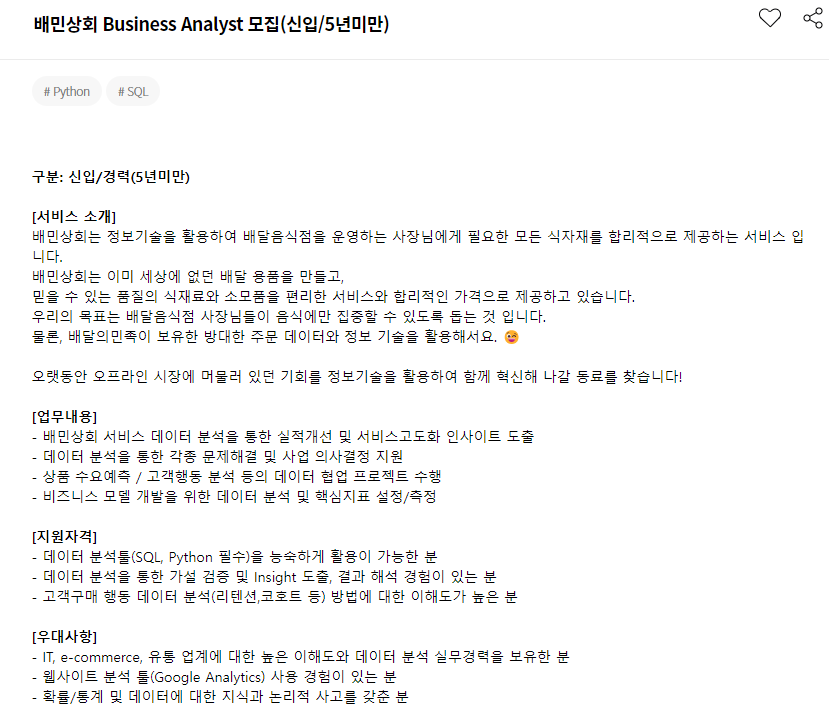 | 데이터 분석 채용공고 살펴보기 - 2 (잡코리아) 😼 의료 part (0) | 2022.02.02 |