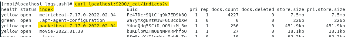 curl localhost:9200/_cat/indices?v