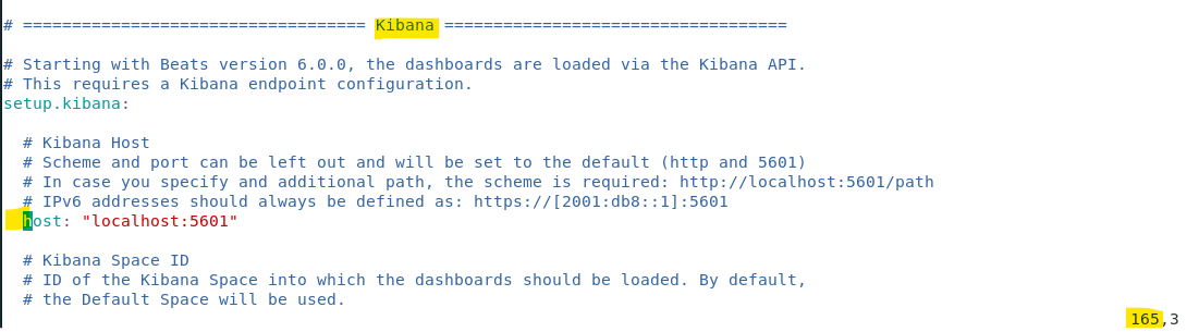 (1) 165번줄의 kibana 설정 host 주석풀기