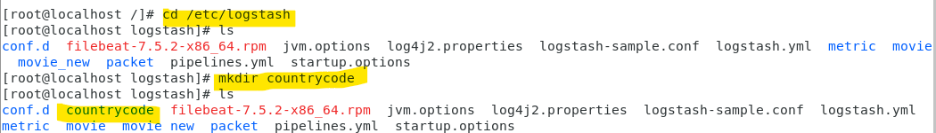 1) /etc/logstash 경로에서 들어가서 mkdir로 countrycode란 폴더를 만들어준다.