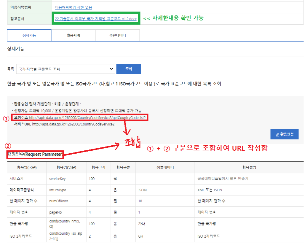 1. 국가·지역별 표준코드 목록 조회: 한글 국가 명 또는 영문국가 명 또는 ISO국가코드(다.참고 1 ISO국가코드 이용 )로 국가 표준코드에 대한 목록 조회 - 국가별 ISO3166-1 표준코드 및 한글명칭, 영