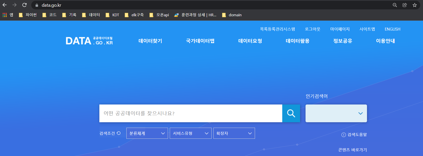 1. 공공 데이터 사이트의 API 자료 확인하기