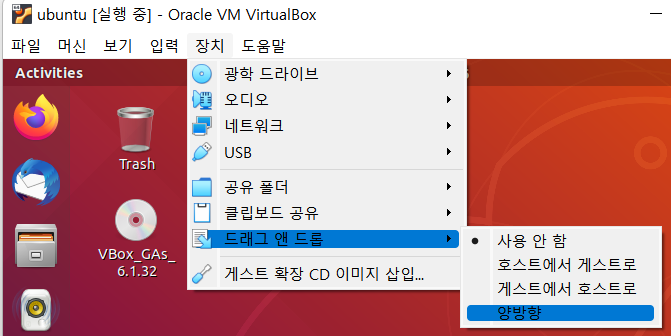 2. [장치] -> [드래그 앤 드롭] -> [양방향] 선택